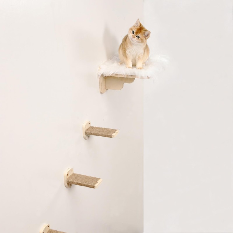 - 【Cat Shelf for All Season 】Our cat wall shelves maximize unused wall space for your feline friend. Designed for all seasons, the detachable flannel cushion is perfect for winter and easily removed for summer. The hemp rope on 3 stepping steps offers your cats more stable grip and safe walk on the wall. Cat shelves for wall give your cats a private area, but also an enjoyable environment to keep them active and happy.