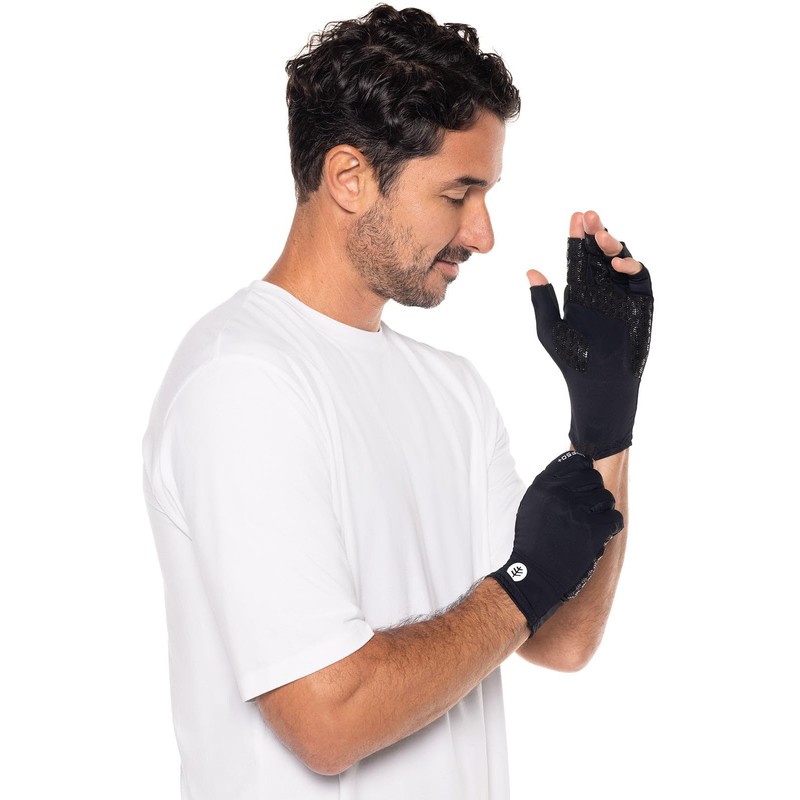 Coolibar UPF 50+ Unisex MaxShield Multi-Sport Fingerless Gloves - Sun Protective (Large- Black)