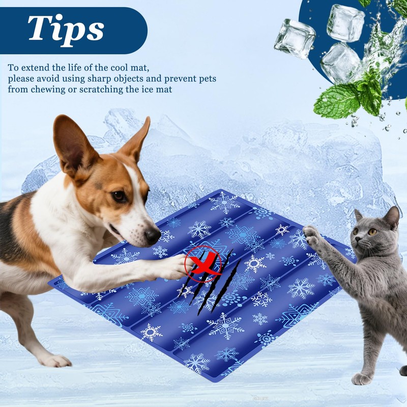 - 【Summer Pet Mat】 This cooling mat is made from natural cooling fabric and can reduce temperatures by 5-10°C (9-18°F). The soft, moisture-resistant surface provides a comfortable place to rest indoors or outdoors. Place it in areas where your pet frequently stays to provide long-lasting cooling effects. It is the perfect choice for combating high temperatures in summer (please avoid direct sunlight)