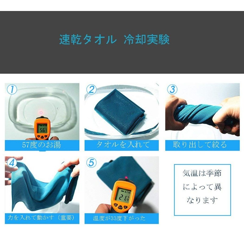 - (Super Cooling Towel that cools quickly) Uses 100% cooling fiber material, which has a cooling sensation effect and is physically effective. Wet the towel completely with water, wring it out and shake it. A cooling towel that cools instantly, has a high cooling effect and keeps you cool for a long time