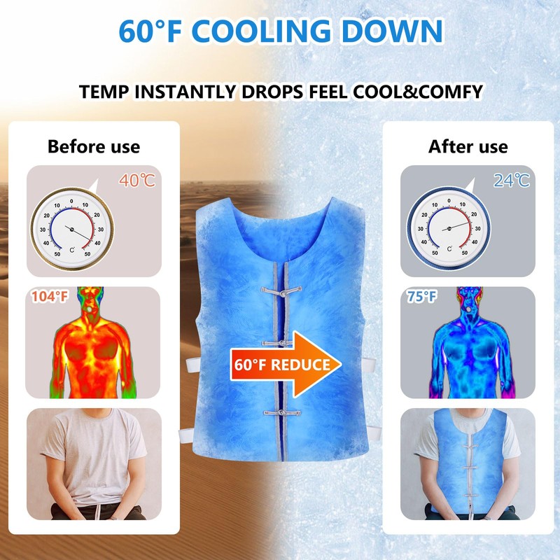 Beat the scorching summer heat with our lightweight, water-activated cooling vest—designed to keep you cool for hours without ice or bulky packs! Perfect for outdoor work, sports, running, hiking, or any hot-weather activity, this adjustable and reusable vest provides instant relief from heat stress and helps prevent heatstroke.