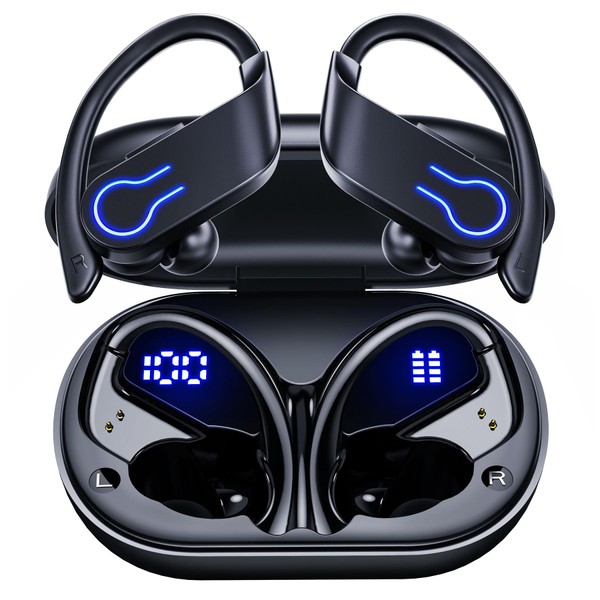 - Ear-hook Design and IP7 Waterproof: Wireless Bluetooth headphones feature a sporty ear-hook design. The curve of the ear hook combined with the ergonomic design makes it more comfortable to wear. Together with the ear hooks, the sports earphones won't fall out even when you're exercising. It rests stably in your ears, allowing you to enjoy music while exercising. IP7 waterproof allows you not to worry about the failure of the headphones caused by sweat.