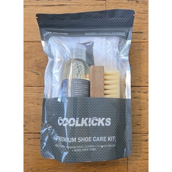 The COOLKICKS Premium Shoe Care Kit is a high-quality product made in the United States, featuring natural coconut extracts for effective shoe care. This care kit includes everything you need to keep your shoes looking great, with a 4 oz size that is convenient and easy to use. The COOLKICKS brand ensures you are getting a top-notch product designed specifically for shoe care and repair. Upgrade your shoe care routine with this premium kit from COOLKICKS.