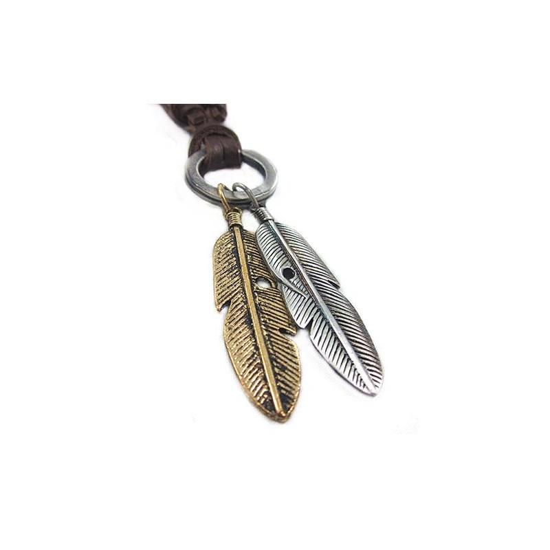 COOLLA Soft Leather Feather Necklace, Men's & Women's Brown Leather Necklace, Boho Style, Alloy Chain