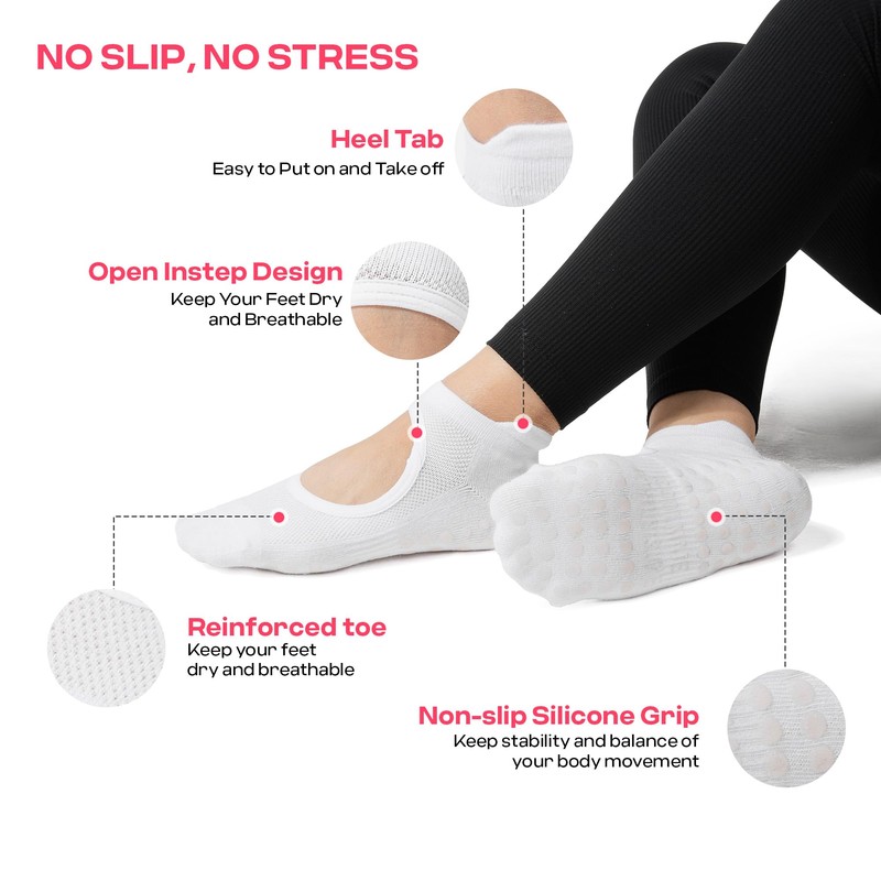 - Non-Slip Design for Enhanced Stability: Featuring premium silicone grips on the sole, these grip socks provide superior traction and balance, ensuring safety during yoga, Pilates, barre, and dance. Great as yoga socks with grips for women or non-grip socks for added flexibility and stability in every session.