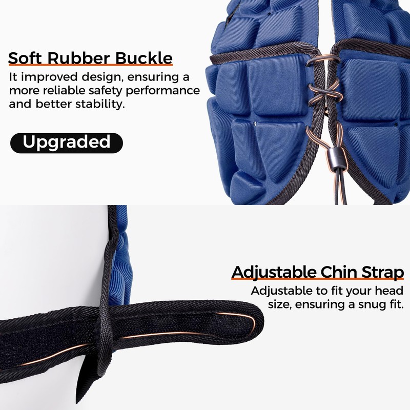 Material - The foam padded helmet is made of high-quality Lycra and polyester fabrics, which are quite breathable and comfortable to wear. The workmanship is very good and the EVA foam is abrasion and dirt resistant. Flexible - It adapts exactly to the head. The adjustable chin strap and rear elastic cord ensure the right fit. The Velcro fastener attaches the helmet firmly to the head. Protection - Excellent shock absorption and pressure relief. The foam protects the head and ears in the event of an impact, it absorbs shock very well and effectively prevents possible injuries during sports. An improved 3D ear design can not only protect the ears, but also do not affect the efficiency of communication with other players.
