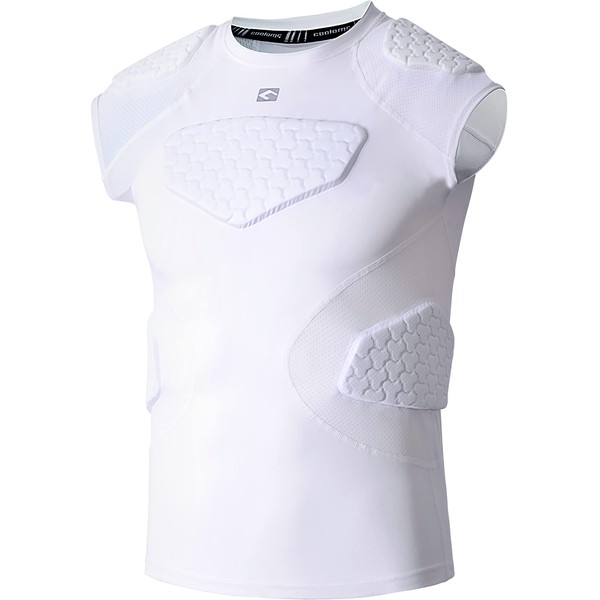 COOLOMG Youth Baseball Padded Shirt Chest Protector Shoulder Rib Heart Sternum Guard for Baseball Football Basketball Lacrosse White M