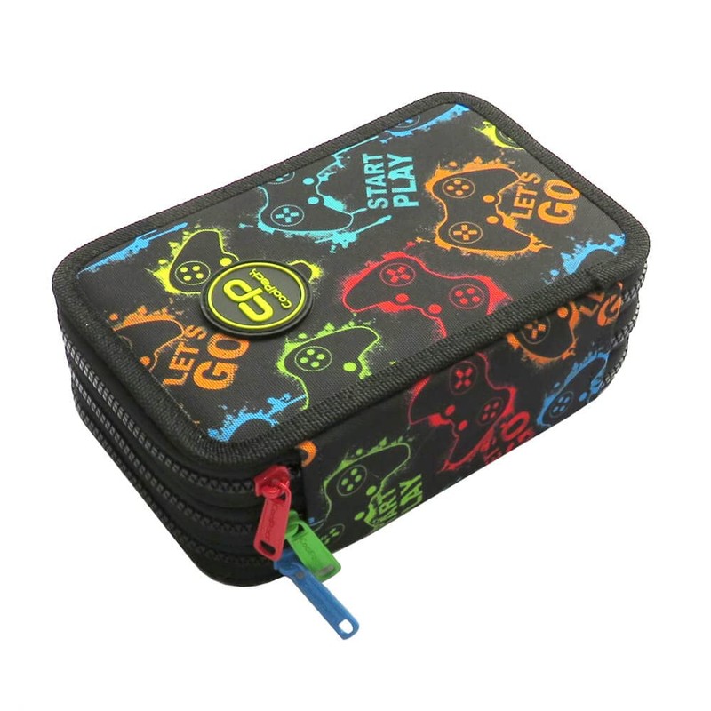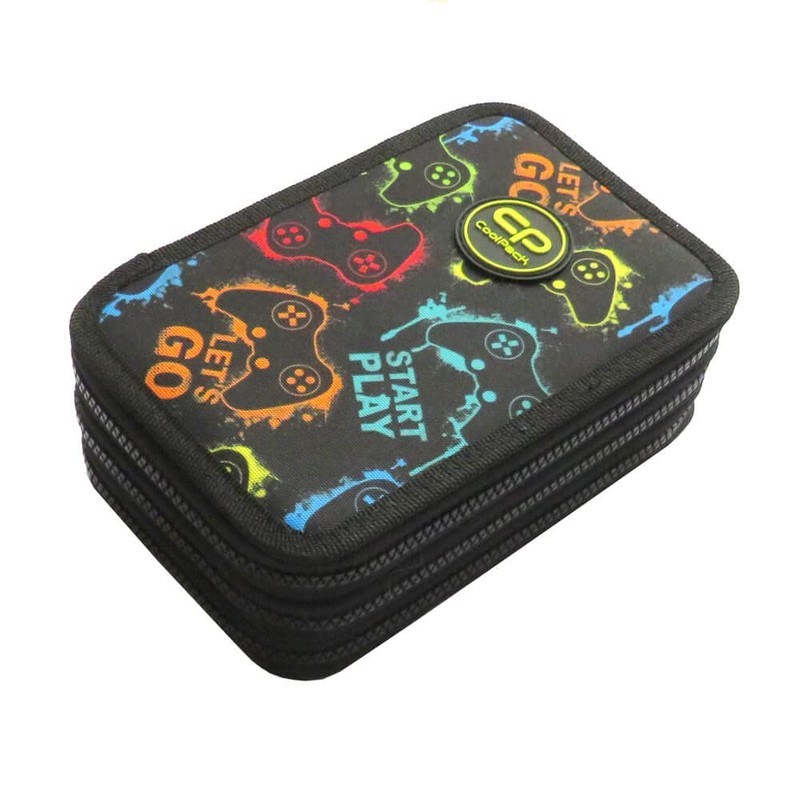 CoolPack XXL Pencil Case Boy, Pencil Case Large 44 Pieces with Patches Filled Pencil Case 3-Tier Motif: XPLAY, Joystick, Play, black, pencil case
