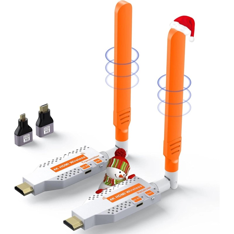 • Complete Package: 1 x Wireless HDMI Transmitter, 1 x Wireless HDMI Receiver, 2 x Antenna, 2 x Type-C Cable, 2 x HDMI Male to Female Adapter, 1 x HDMI Dual Female Adapter, 1 x Mini HDMI to HDMI Adapter, 1 x Micro HDMI to HDMI Adapter, 1 x User Manual
