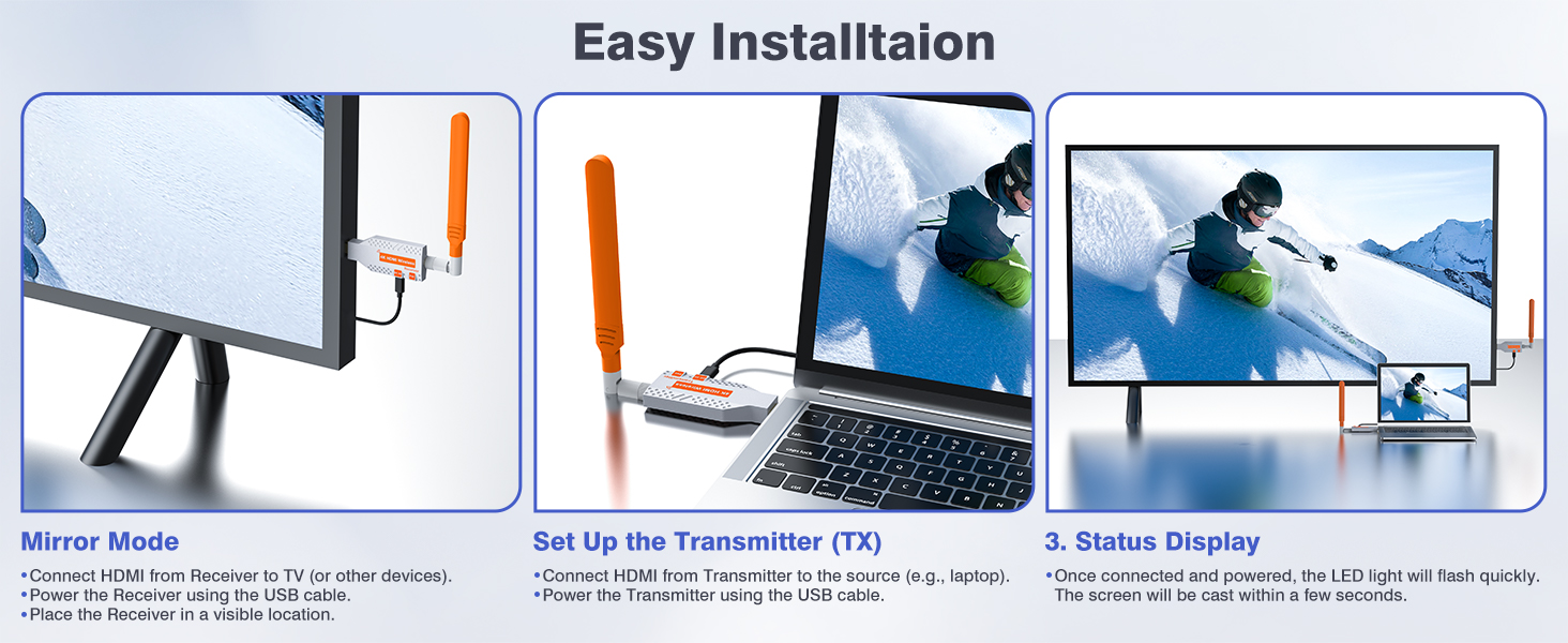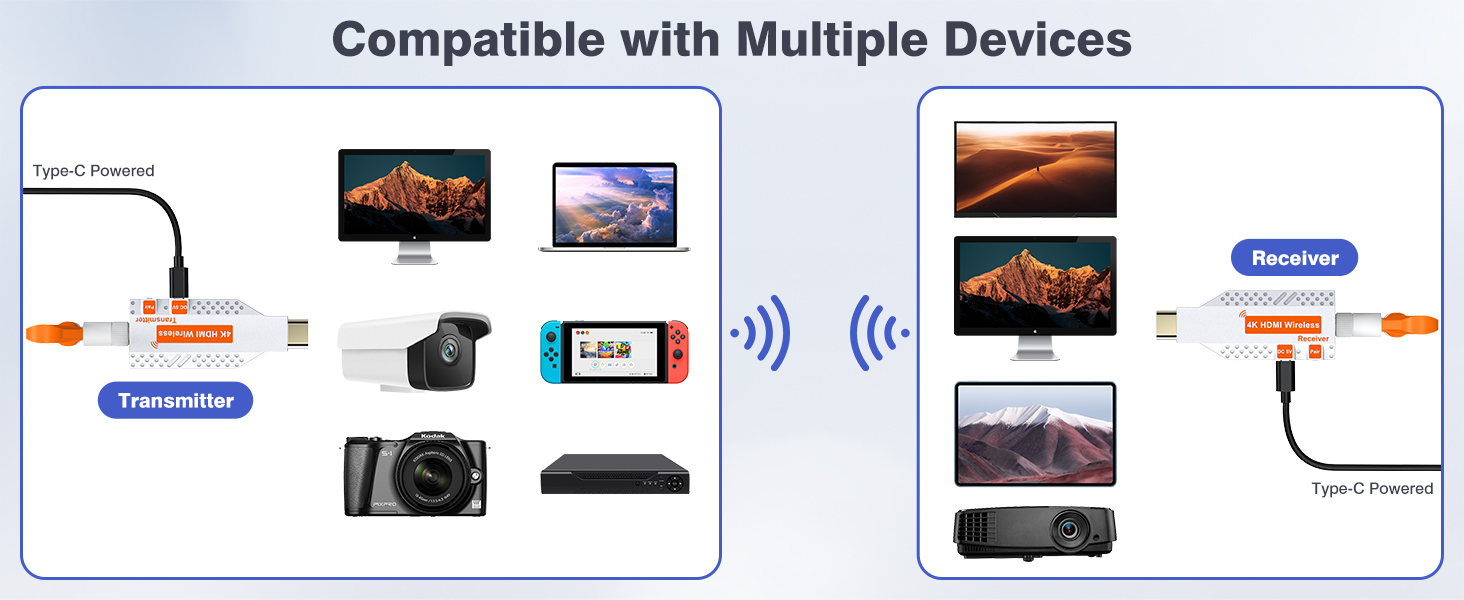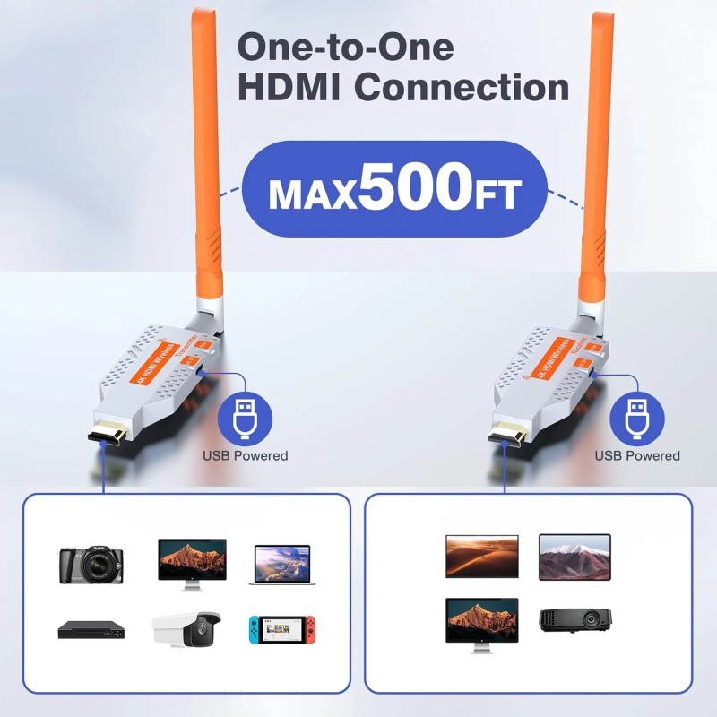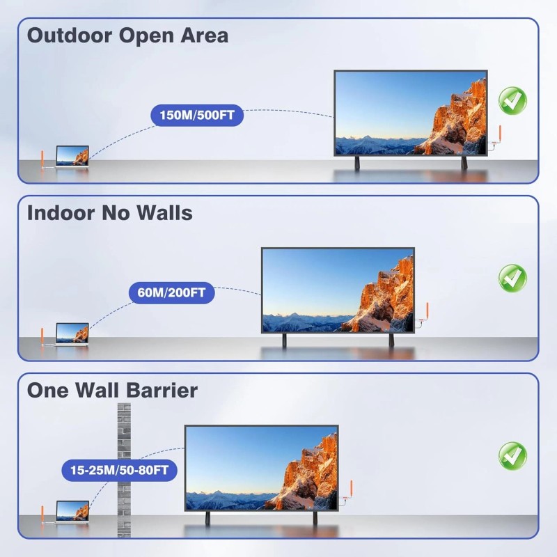 • Reliable Performance: Operating in temperatures from -5°C to +70°C and humidity levels from 5% to 90%, our wireless HDMI 4K extender delivers reliable performance in diverse environments, indoors and outdoors.