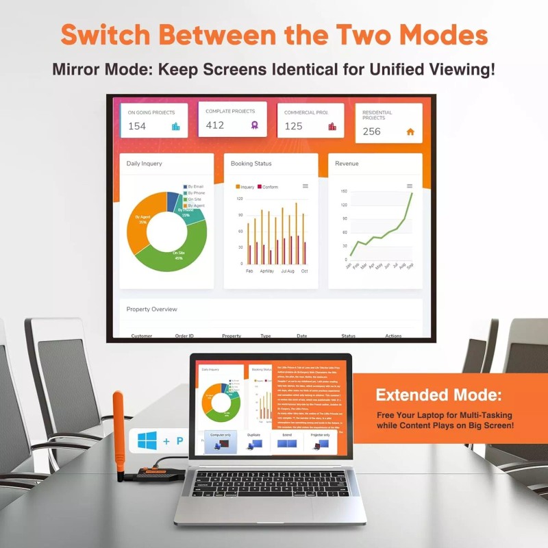 - 【Widely Use】This HDMI transmitter and receiver is compatible with television, set-top box, camera, laptop, and game console, DVD, Blu-ray players and other device that support HDMI output. The HDMI sender and receiver wireless also support duplicate and extend mode of computer/laptop, which greatly enhances work efficiency and entertainment experience.