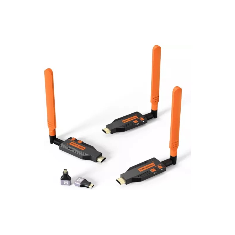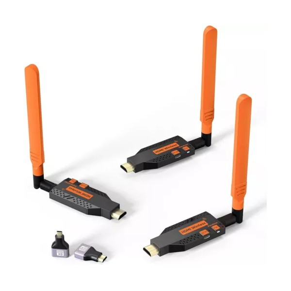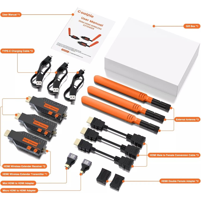 - [ Package Included ] 1x Transmitter (TX) , 2x Receivers (RX), 3x Antenna, 3x HDMI Male to Female Adapter Cable, 2x HDMI Dual Female Adapter Cable, 3x USB-C Charging Cable, 1x Mini HDMI, 1x Micro HDMI and 1 x User Manual.