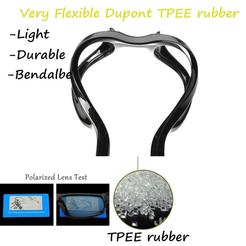 - The lens is made of impact-resistant polycarbonate material, which has excellent optical properties, can effectively block 100% of UVA and UVB rays, protect children's eyes from harm, and reduce visual fatigue. The lens has a special anti-glare treatment, polarized, which can effectively reduce glare and improve visual comfort.