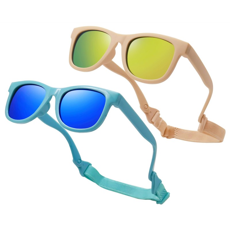 COOLSOME Kids Flexible Polarized UV400 Sunglasses with Strap For Boys Girls Toddler 0-10 (1, peach/mirrored(0-24 mths/0-2 yrs), 40mm)