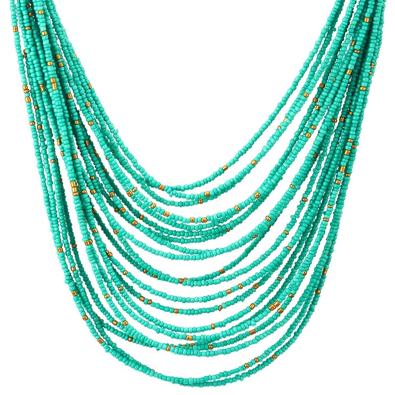 COOLSTEELANDBEYOND Boho Ethnic Bohemian, Multi-Strand Bead Statement Necklace Waterfall Turquoise Bead Cord, Party, Metal, No Gemstone