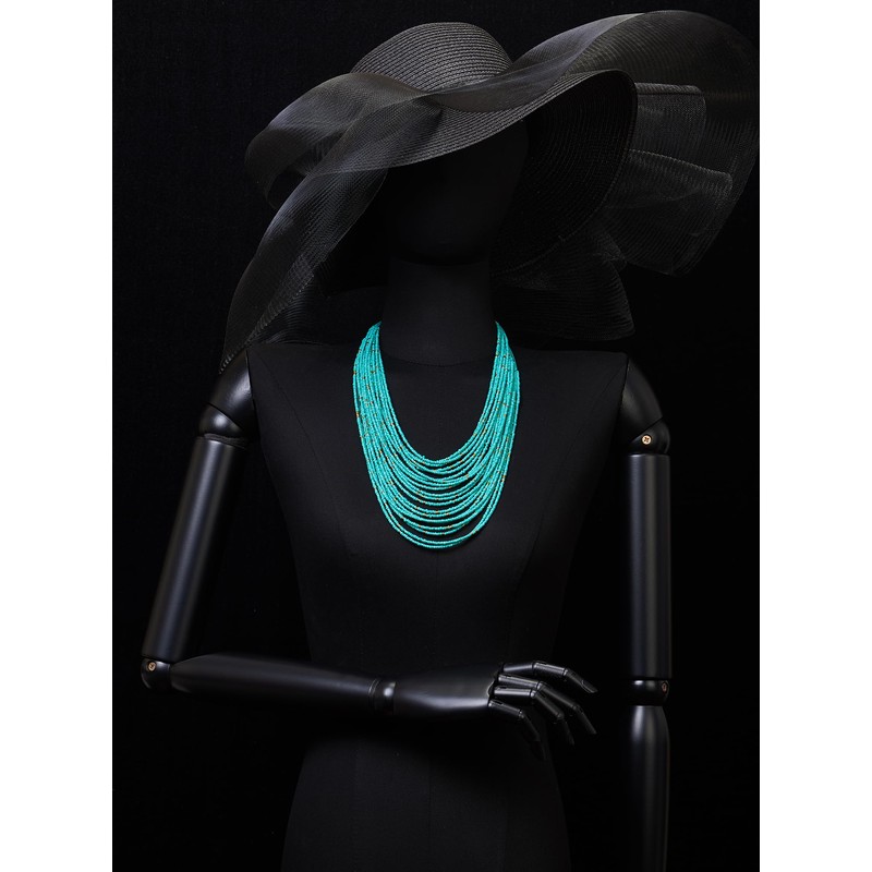 • Boho Ethnic Bohemian, Multi-Strand Bead Statement Necklace Waterfall Turquoise Bead Cord, Party