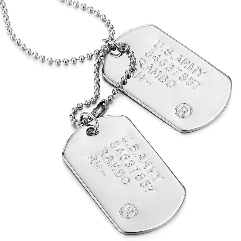 - Classic Two-Pieces Mens Military Army Dog Tag Pendant Necklace with 28 inches Ball Chain