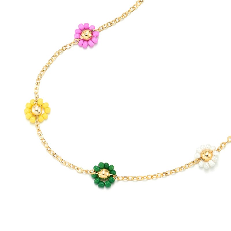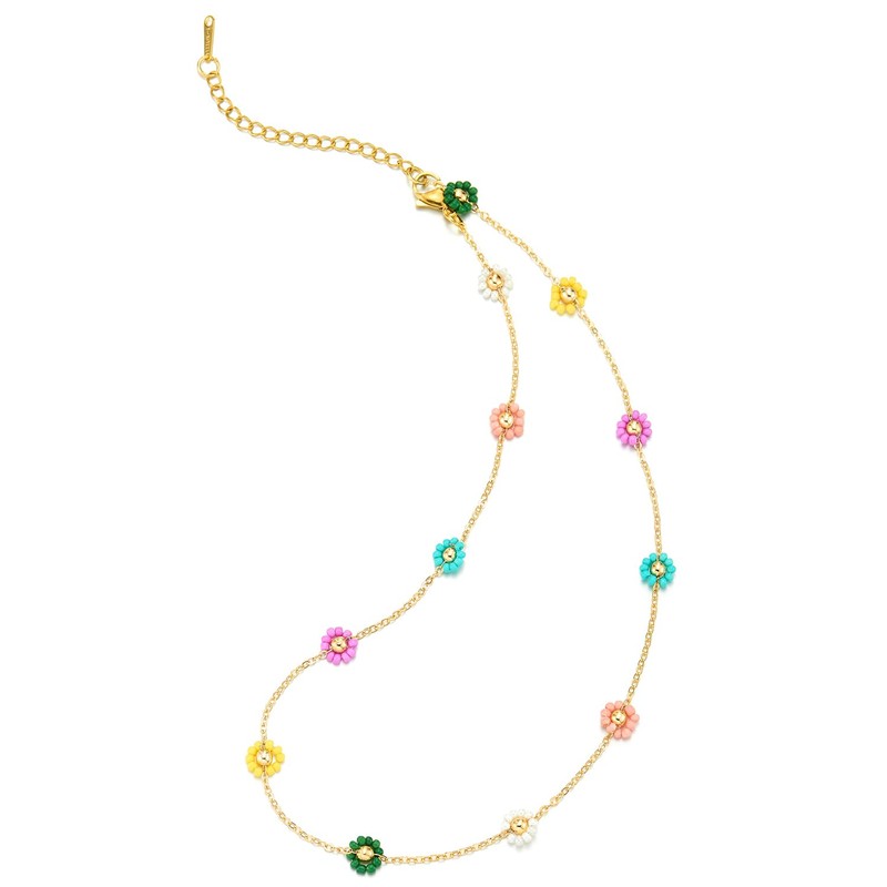 - Colorful Flower Beads Necklace Chocker Collar Necklace, Multi Color Cute Daisy