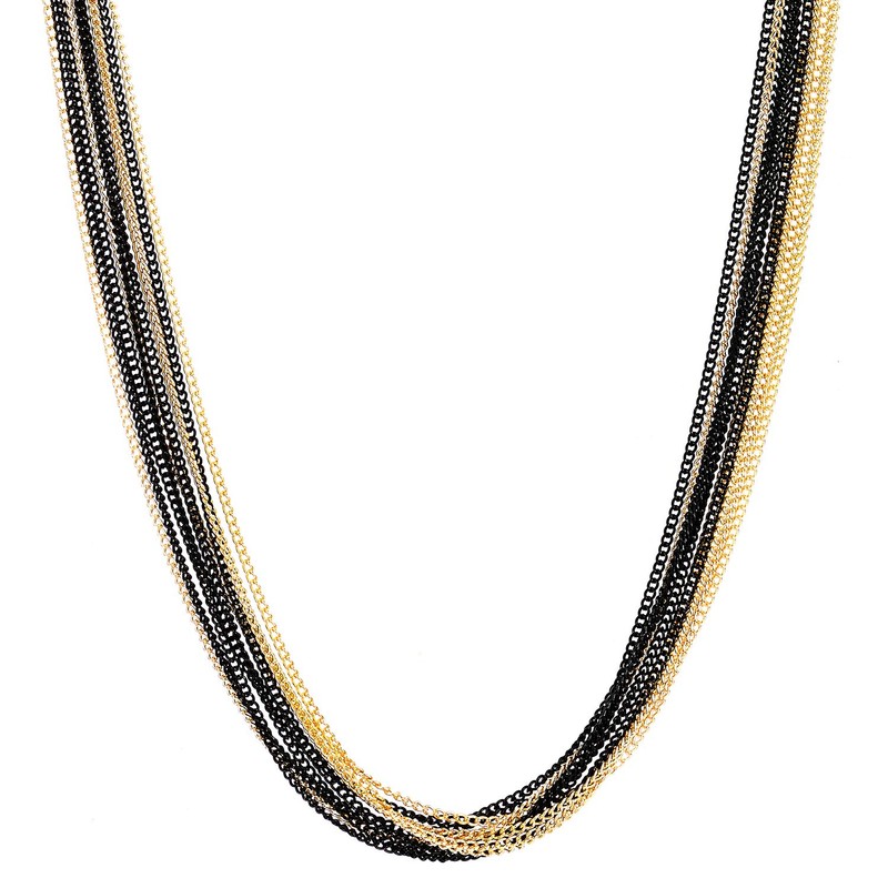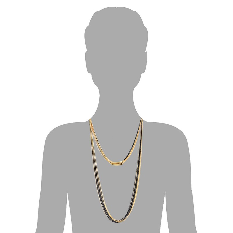 COOLSTEELANDBEYOND Gold Black Statement Necklaces, Multi-Layers, Long Chain with Tube Charm Pendant, Evening Dress, Prom, Alloy, Non-applicable