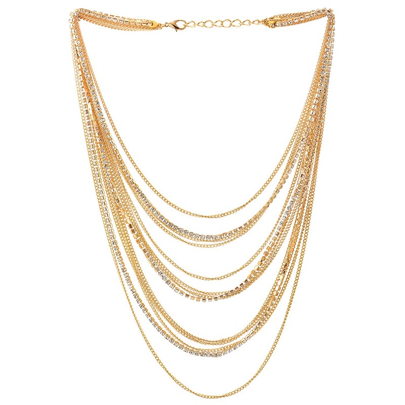 - Gold Waterfall Multi Layers Chain Statement Necklace Collar Pendant with Rhinestone Chain Evening Dress
