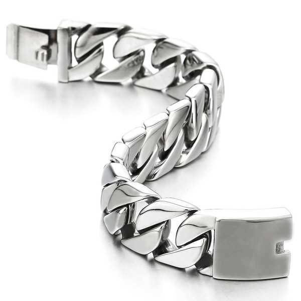 COOLSTEELANDBEYOND Masculine Mens Stainless Steel Large Link Curb Chain Bracelet, Polished(CA)