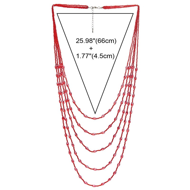 COOLSTEELANDBEYOND Red Oval Beads Statement Necklace Multi-Strand Long Chains...