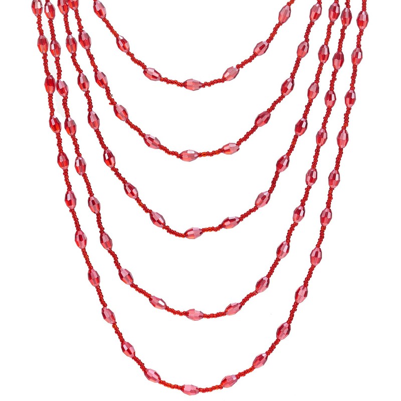 • Red Oval Beads Statement Necklace Multi-Strand Long Chains with Crystal Charms Pendant