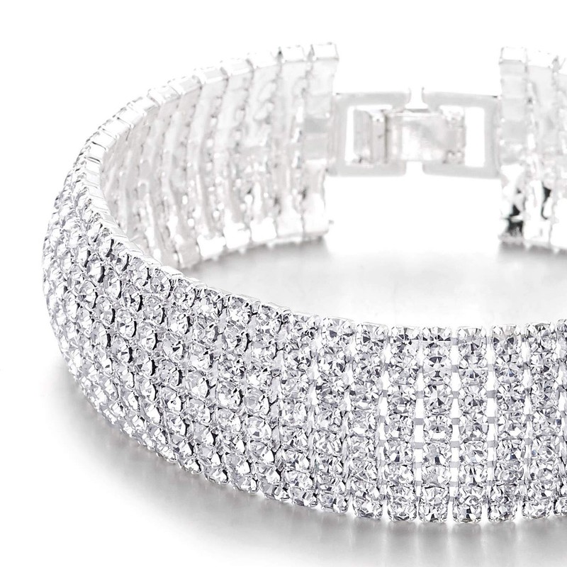 COOLSTEELANDBEYOND Sparkling Womens Crystal Rhinestones Cluster Wide Bangle Bracelet, Luxury(CA)