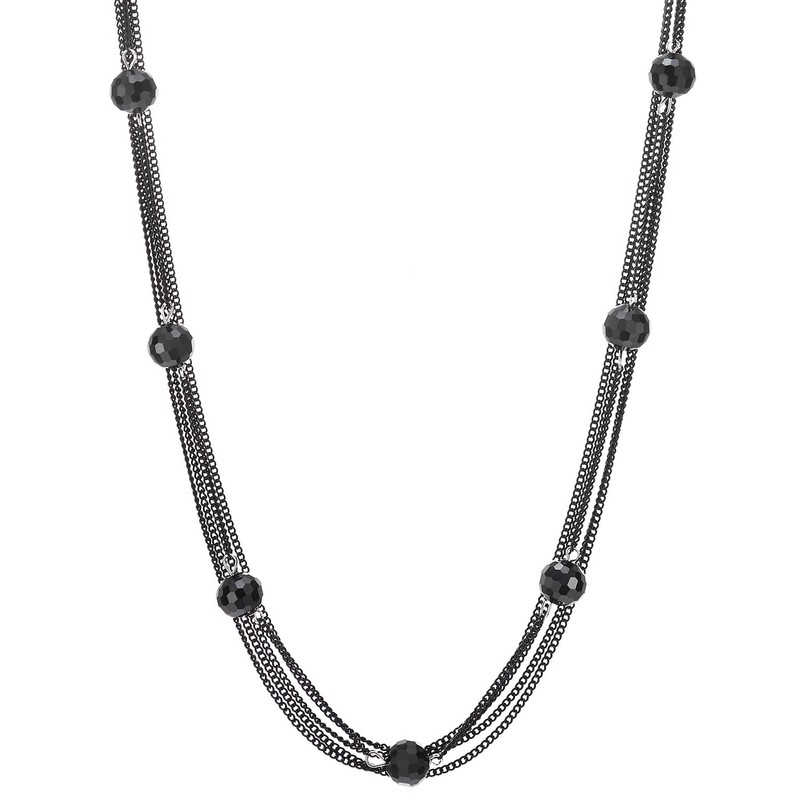 - Black statement pendant multi-strand long chain with black faceted crystal ball beads charm necklace