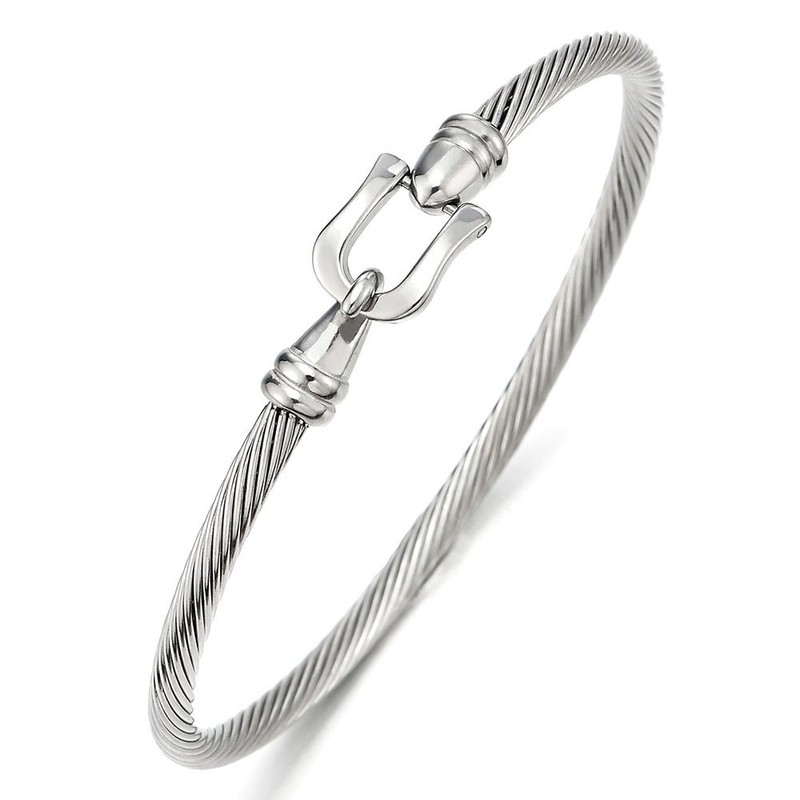 COOLSTEELANDBEYOND Stylish Stainless Steel Twisted Cable Bangle Bracelet with Hook Clasp for Women(CA)