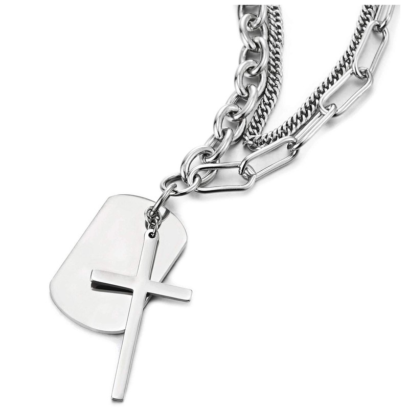 COOLSTEELANDBEYOND Two Pieces Men's Women's Cross Dog Tag Double Curb Chain Link Chain Pendant Stainless Steel Chain with 60 cm Steel Ball Chain, Stainless steel, metal, steel, Non-applicable