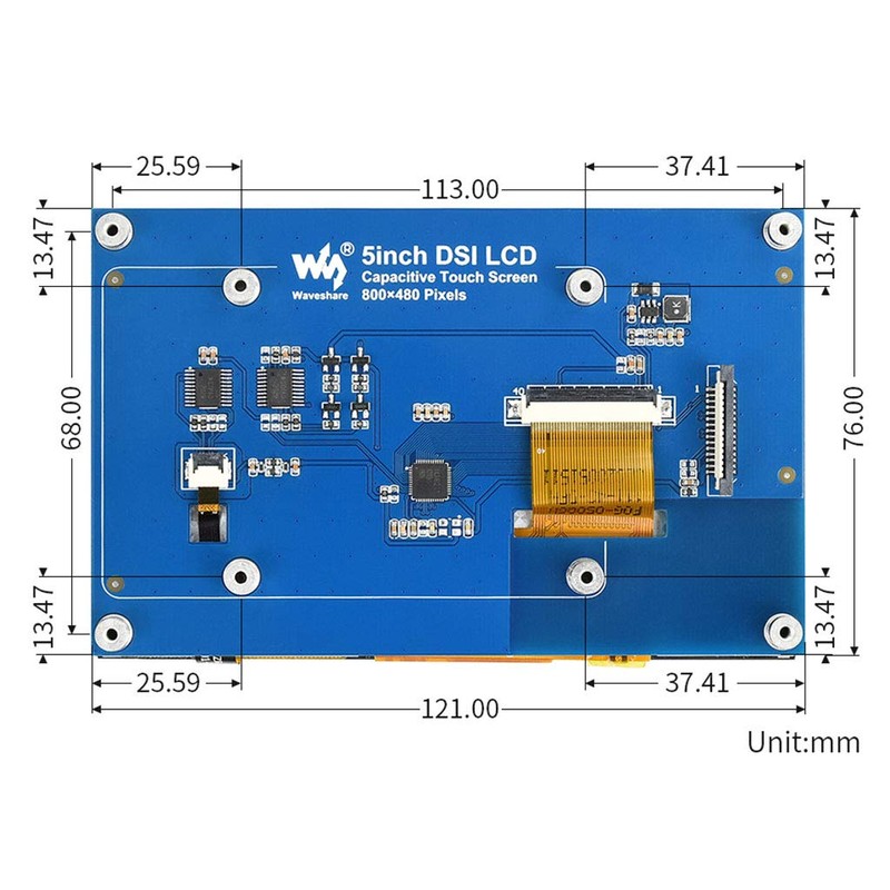 Coolwell Waveshae 5inch Capacitive Touch Display for Raspberry Pi Series and CM3/3+, 800×480, DSI Interface Up to 5-Points Touch