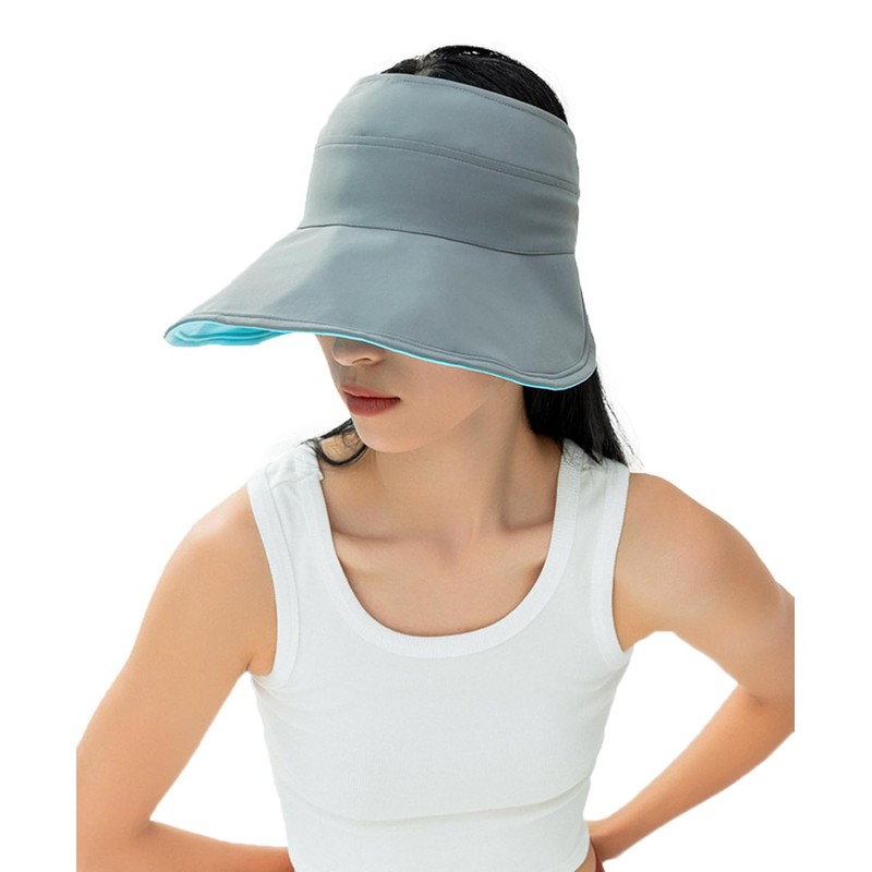 Coolwife Women's Sun Visor Hat Wide Brim Quick Drying Double Side Foldable Adjustable Summer Beach Cap (UK, Alpha, One Size, Black Blue)