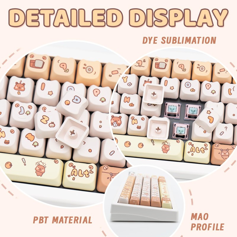 3.🧸【Durable PBT Material】With high-quality PBT material and an anti-grease coating, these keycaps provide top-notch durability and an excellent feel for your typing. less prone to grime buildup.