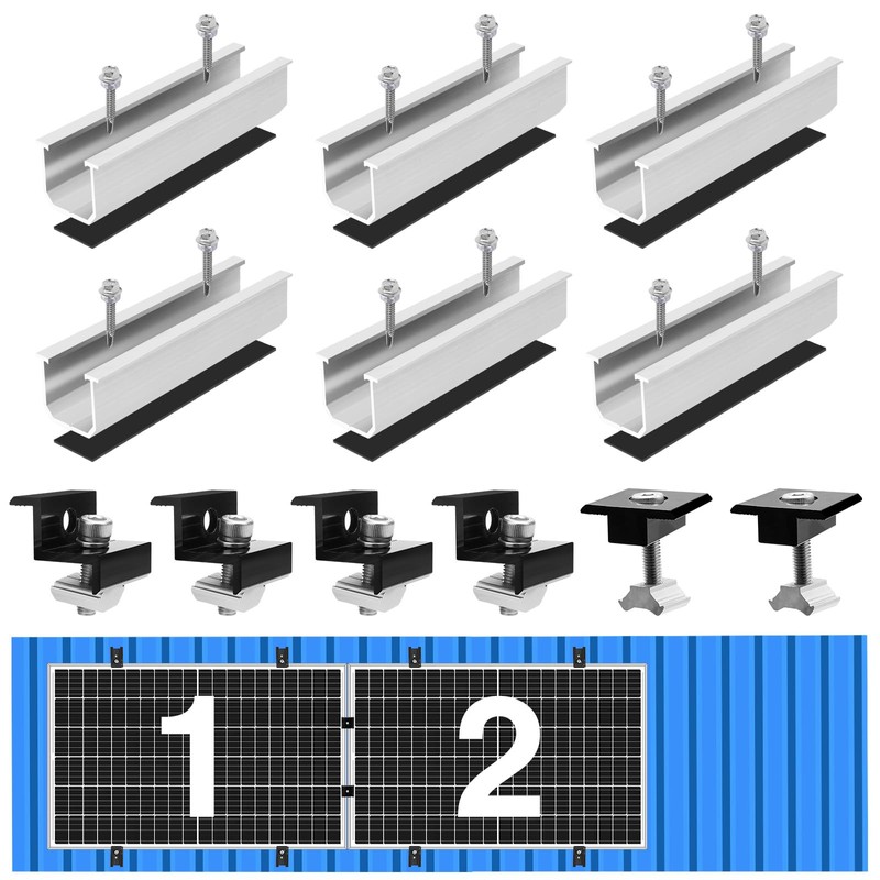 - Solar panel set: the middle clip of the solar panel has a very strong T-shaped appearance. The end clips have a Z shaped design that fits perfectly with the solar panel and can be attached well. The guide rail is U-shaped and can be installed horizontally and vertically, making the direction of the guide rail better adapted to your needs. The T bridge and the Z shaped design ensure a firm connection with the solar panel