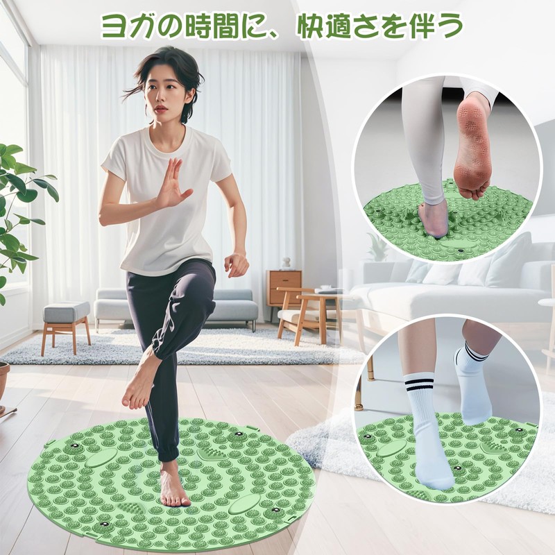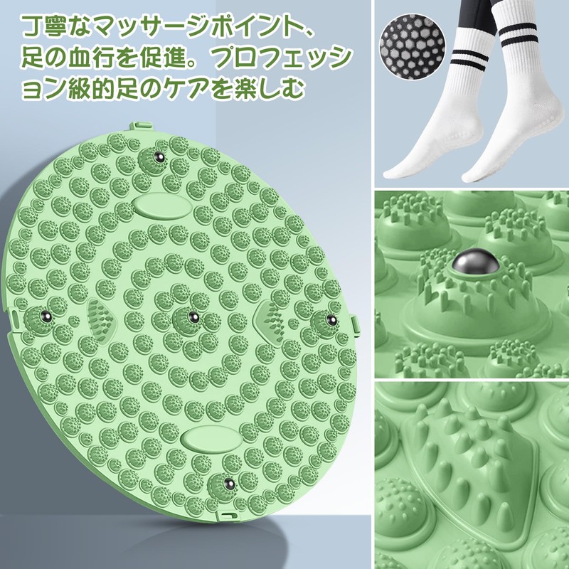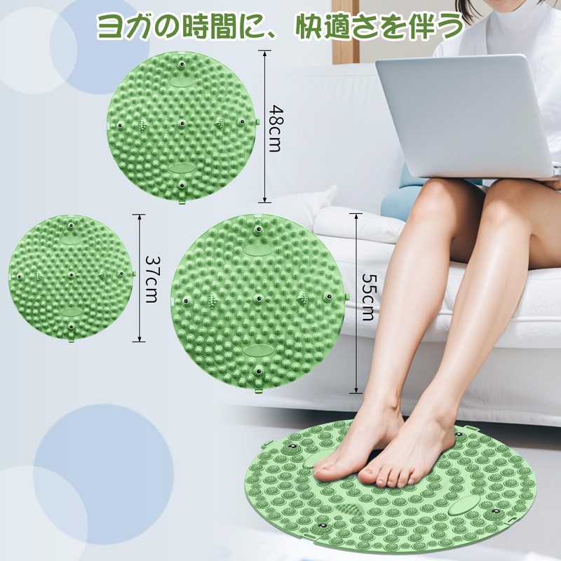 - (Foot Pressure Massage Mat) Diameter 14.6 - 21.7 inches (37 - 55 cm) Thick Round Design (Weight: 7.1 oz (200 g); Blue/Purple/Green/Pink; 4 colors available; 3D acupressure protrusions along the reflection area of the foot to achieve the right amount of pressure adjustable flexibility (approx. 0.3 inches (8 mm) thickness provides moderate resilience to achieve zero age) and durability for the foot care for the entire family