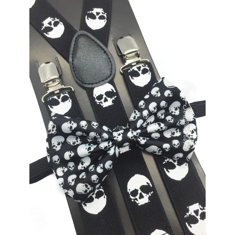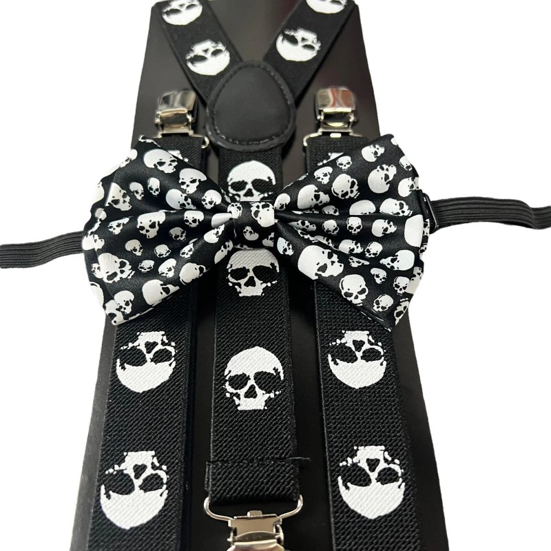 coool Halloween Skull Head Design Bow Tie & Suspender Set Tuxedo Wedding Accessories