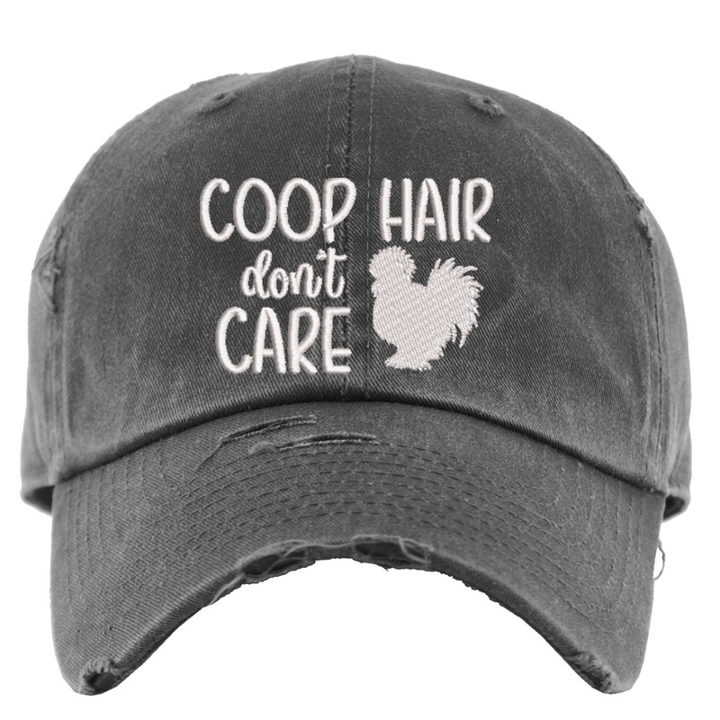 Coop Hair Don't Care Silkie Chicken Hat | Distressed Baseball Cap or Ponytail Hat | Farm Hats | Chicken Accessories