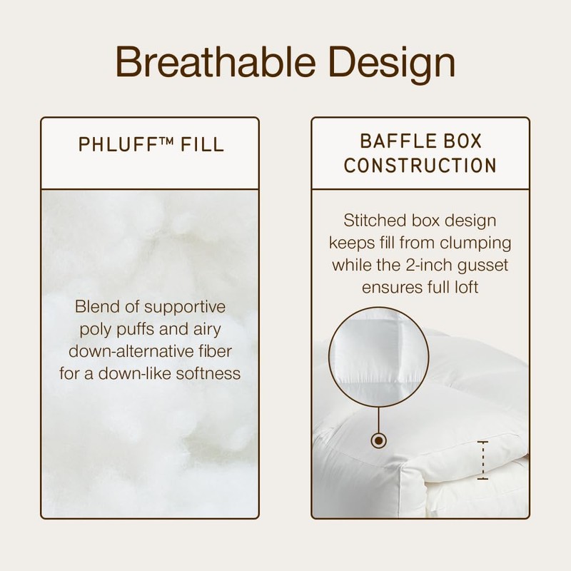 - Baffle Box Construction for Full Body Support: The 2” gusset and thoughtfully designed baffle box structure keep the fill evenly distributed for stable, all-night support. It’s like sleeping on dozens of mini pillows, each pocket working in harmony to cushion pressure points and create a cloud-like sleep surface that keeps you supported and comfortable from edge to edge. Perfect for refreshing older mattresses or softening a too-firm one.