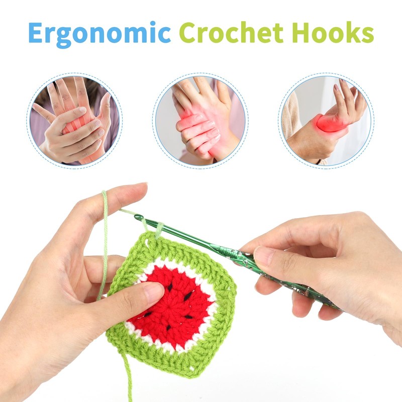 - [New Type Crochet Hook - Tapered Handle] Our crochet hook adopts an innovative tapered design, which is more beautiful and unique than other crochet hooks on the market. It is lightweight and has a long handle, making it easier to grip. The ergonomic curved design makes crochet needle fit joints of your hands more closely. So even after 6 hours of crochet knitting, your hands won't feel tired. The warm crochet hook enables you to happily create great handicrafts even in the cold winter.