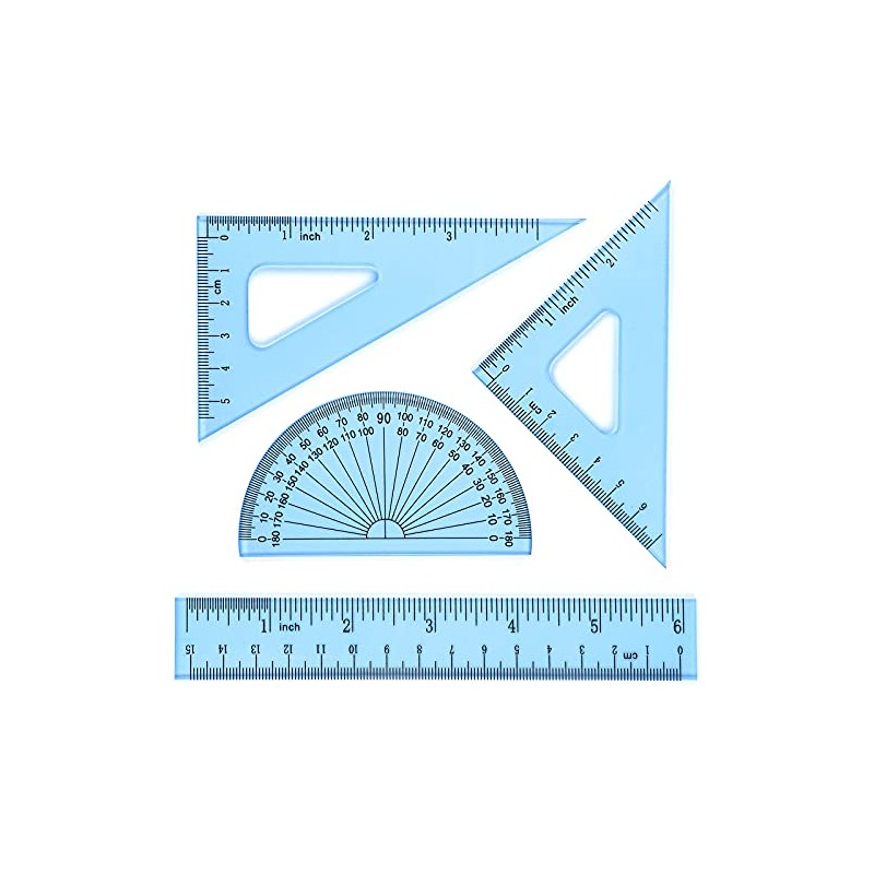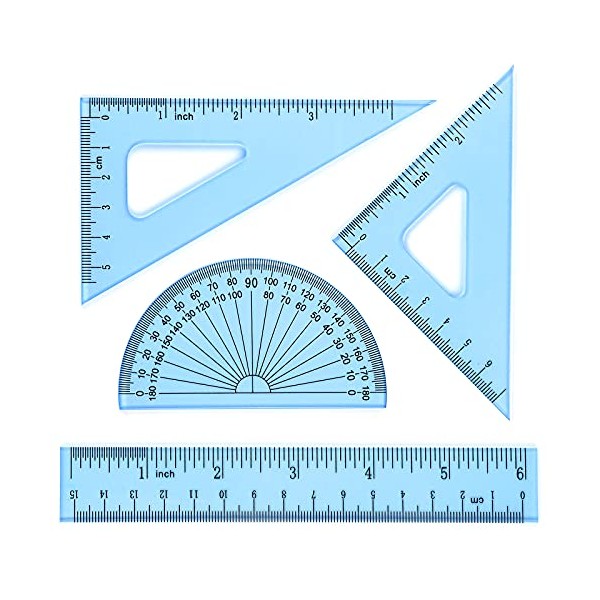 Coopay 6 Inch Math Geometry Tool Plastic Ruler Set Includes Straight Ruler, Triangle Rulers, Protractor for Student School Office Supplies (Blue)