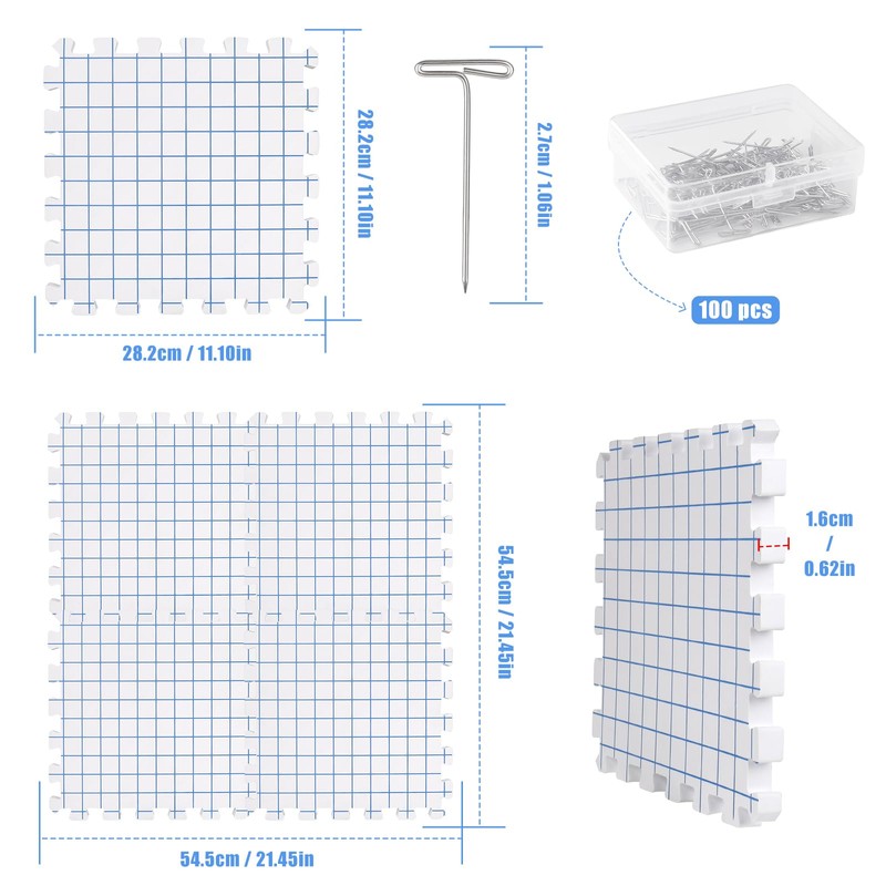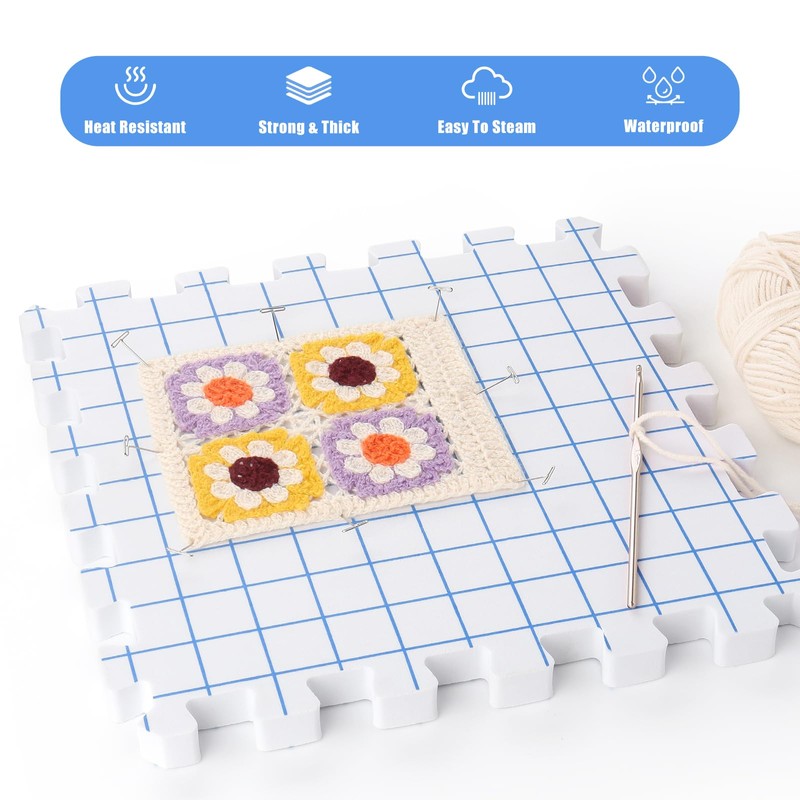 - [Perfect for Precise Blocking and Shaping of Your Knittings] Perfect for the finishing touch on a knitting project. The squares are easy to assemble and can adapt to most desired shapes. The mats are gridded with squares for even shaping. The guidelines on the boards enable the user to line up any straight edges that need blocking easily