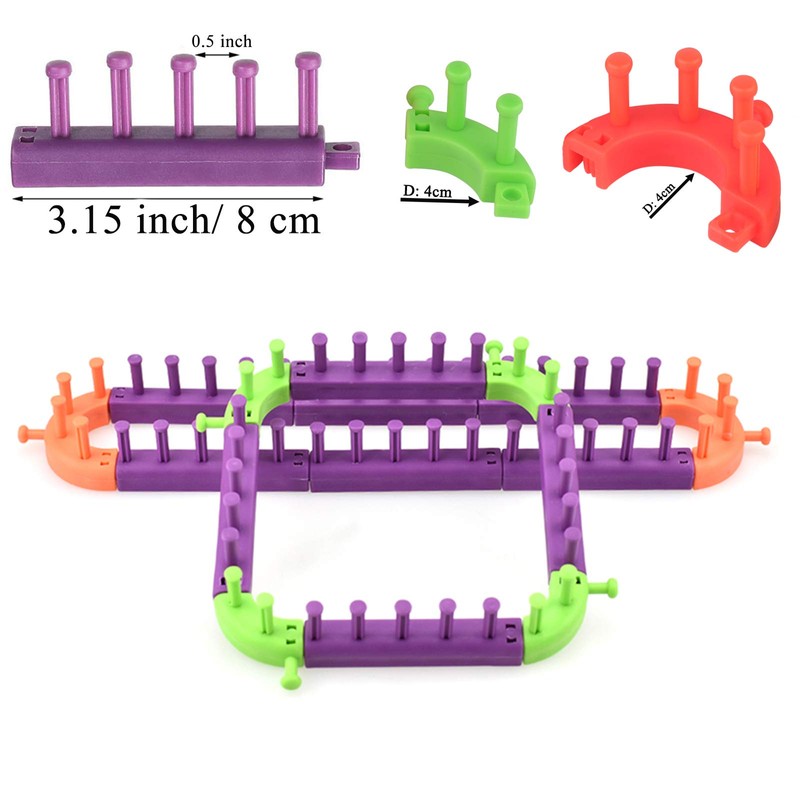 - [Various weaves with a flexible set]: the package includes 14 linear looms, 6 x bow looms part, 1 crochet hook and a large plastic needle. This adjustable loom set can assemble dozens of different looms. There are small socks for children, knitting boards for teenagers and large knitting machines. The number of knitting works depends on your imagination
