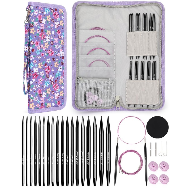 - [ 7-in-1 Knitting Needles Se ] Coopay interchangeable knitting needle set comes with 9 pairs of knitting needles (3–8mm), 4 flexible cables (40/60/80/100cm), 4 end caps, posting tool, 2 cable connectors, 2 fixing wrenches, portable carry bag. Everything you need in one set—unleash your knitting creativity