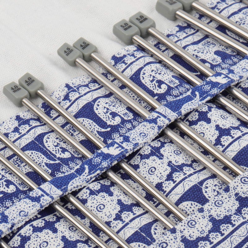 - [Lots of Pockets for Knitting Needles and Crochet Hooks] This roll provides plenty of storage space for all of your needles and pins. It features a self-tie, all-over sketchy elephant print and comes with 20 slots for short knitting needles, double pointed needles, tunisian needles or crochet hooks etc (up to 11 inch)