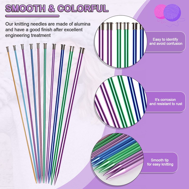 - [Nice Gift for Knitters, Or Treat Yourself] Our knitting needles set is suitable for any knitters. Straight knitting needles can be used as a creative gift for loved ones, friends or people who like knitting. Special gifts on Christmas, birthday, wedding anniversary and other occasions. Knitting needles can also improve hands-on ability and creativity, and are ideal gifts for young people to learn new skills