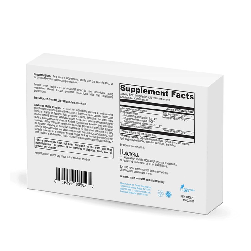 - HIGH QUALITY GUARANTEE: Cooper Complete Advanced Daily Probiotic is made from the highest quality ingredients available and is manufactured in a cGMP compliant facility in the USA.