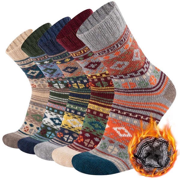 - 【Great Gift Choice】 - Great socks often make great gifts In Christmas or holiday. These 5 pairs mix colors winter warm wool socks are the perfect presents in winter for family members or friends, to show your concern and warmth to them.
