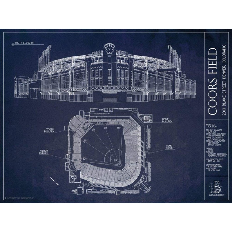 Coors Field Blueprint Style Print (Unframed, 18"H x 24"W)