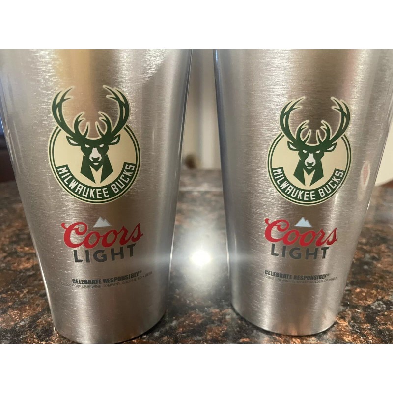 Milwaukee Bucks / Coors Light Metal Aluminum 22 Oz. Set of 2 Cups - NEW. You get two unused cups - still wrapped from the distributor. Buy multiples and save on combined shipping. Six sets of two cups available as of original posting.